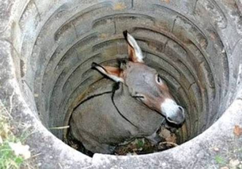 Pronto vieron sorprendidos como el asno llegaba hasta la boca del pozo y salía trotando.