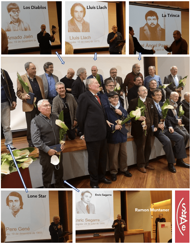 Y el segundo fue un homenaje que nos hizo la SGAE (Sociedad General de Autores y Editores) a todos aquellos compositores catalanes que hace entre 50 y 52 años que somos socios de la entidad. (Es decir, que nos lo hicieron «por ser viejos»). Cómo podéis ver en la imagen adjunta, estaba Lluís Llach, uno de Los Diablos, de La Trinca, de Lone Star, de Los de la Torre, etc.