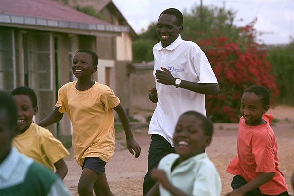 Antes de ganar dos medallas olímpicas y romper el récord mundial de maratón, Paul Tergat era un estudiante pobre en el Valle del Rift de Kenia. El dice que la alimentación escolar que recibió de niño jugó un papel fundamental en hacer explotar su talento atlético. Hoy día Tergat es un embajador contra el hambre del PMA, abogando a favor de niños en edad escolar que padecen hambre en el mundo.