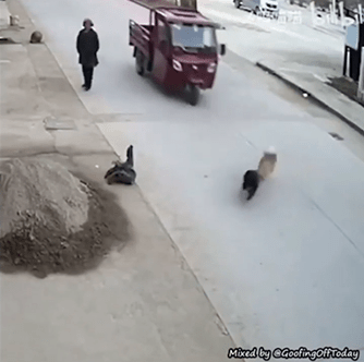 Perrito callejero empujó a su amigo para evitar que fuera atropellado.