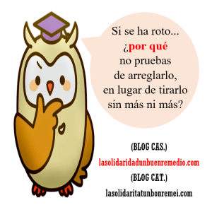 Si se te ha estropeado algo, antes de tirarlo y comprar uno nuevo intenta repararlo. Actualmente, las personas tendemos a desechar enseguida aquellos productos que “se rompen” sin preocuparnos por intentar darles una solución para que vuelvan a funcionar como antes.